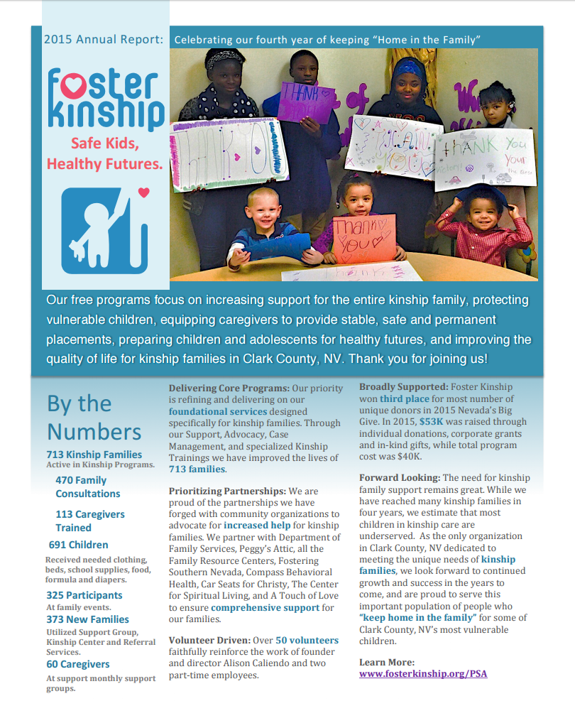 We are proud to share our annual reports and detail all the ways we can help keep home in the family and strengthen kinship caregivers’ capacity to provide safe, stable, and nurturing homes for children.